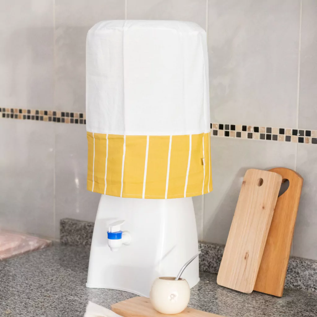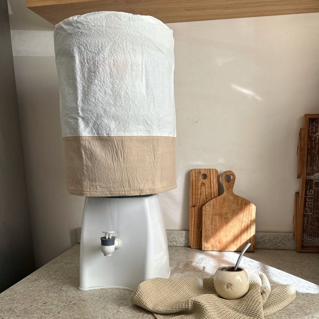 Transformá tu cocina, oficina o negocio con nuestro cubrebidón de agua de tussor, estampado a mano. Porque sabemos que los bidones no siempre se ven bien, este accesorio es la solución perfecta para integrarlos de manera estética y armoniosa en cualquier ambiente.