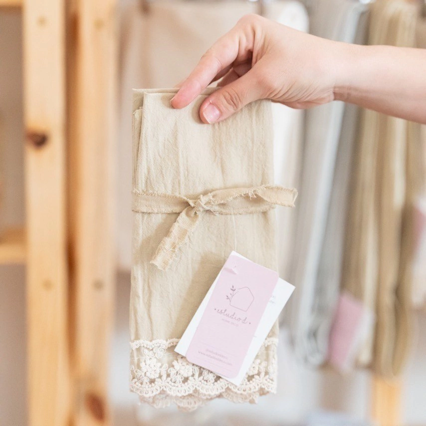 🌿✨ Set de Servilletas de Tusor con Puntilla ✨🌿